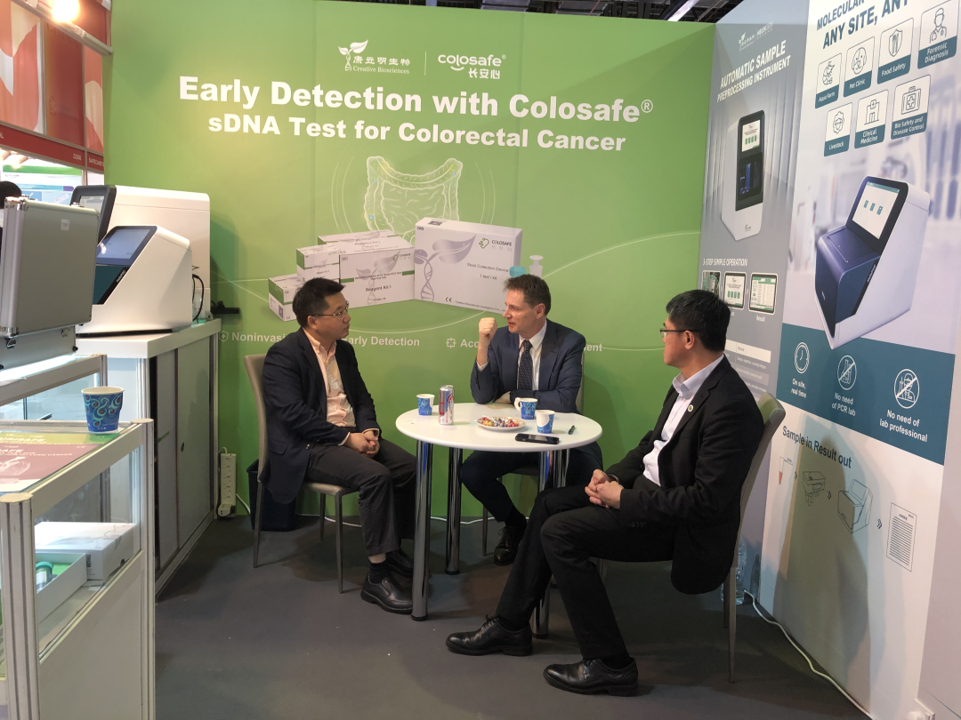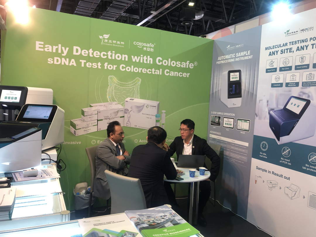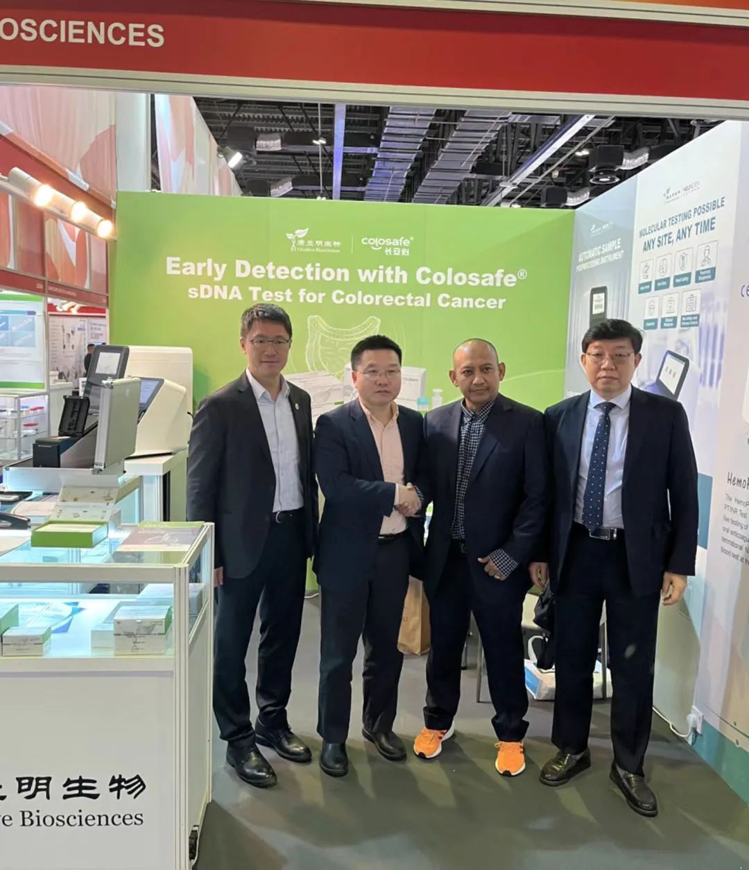 展會上,康立明生物創(chuàng)始人、腸癌早篩技術發(fā)明人鄒鴻志博士親臨現(xiàn)場,并帶領專業(yè)團隊為多方客戶熱情專業(yè)的講解,共同交流,洽談合作。并介紹了長安心®目前在國內(nèi)568051例應用檢測(截至2022年12月31日)的成功模式與經(jīng)驗。