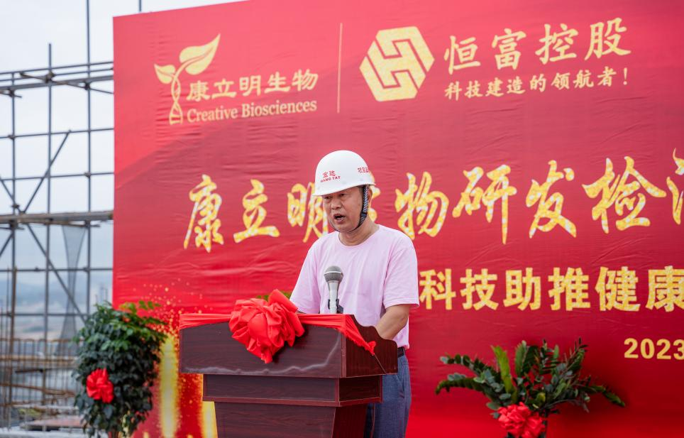 康立明生物創(chuàng)始人、董事長鄒鴻志博士致辭,并宣布康立明生物體外診斷試劑研發(fā)檢測生產(chǎn)基地大樓封頂大典正式啟動!