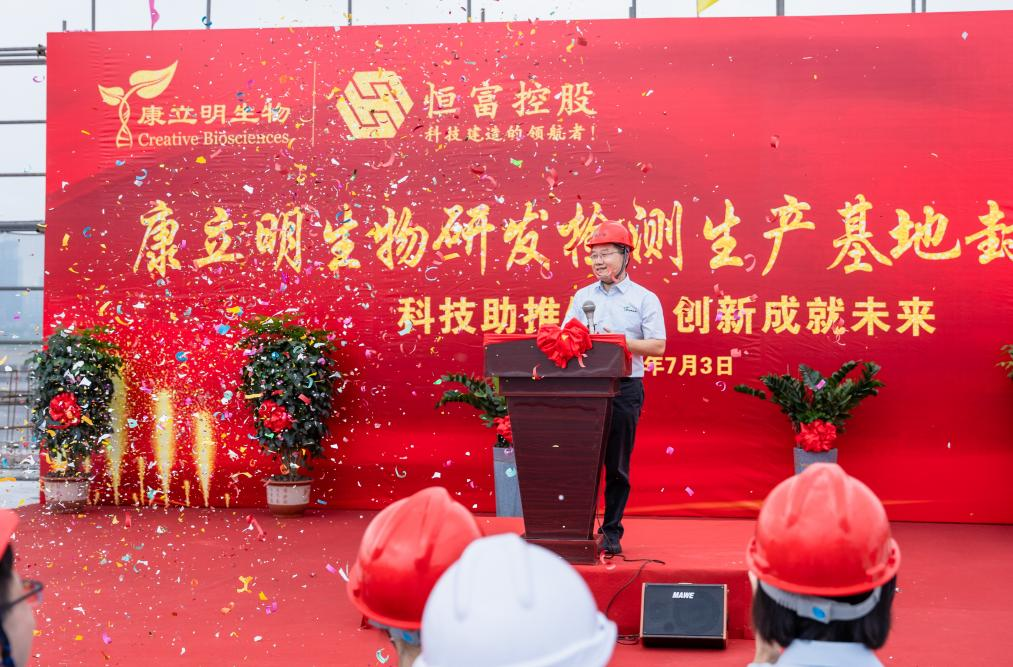 康立明生物創(chuàng)始人、董事長鄒鴻志博士致辭,并宣布康立明生物體外診斷試劑研發(fā)檢測生產(chǎn)基地大樓封頂大典正式啟動!