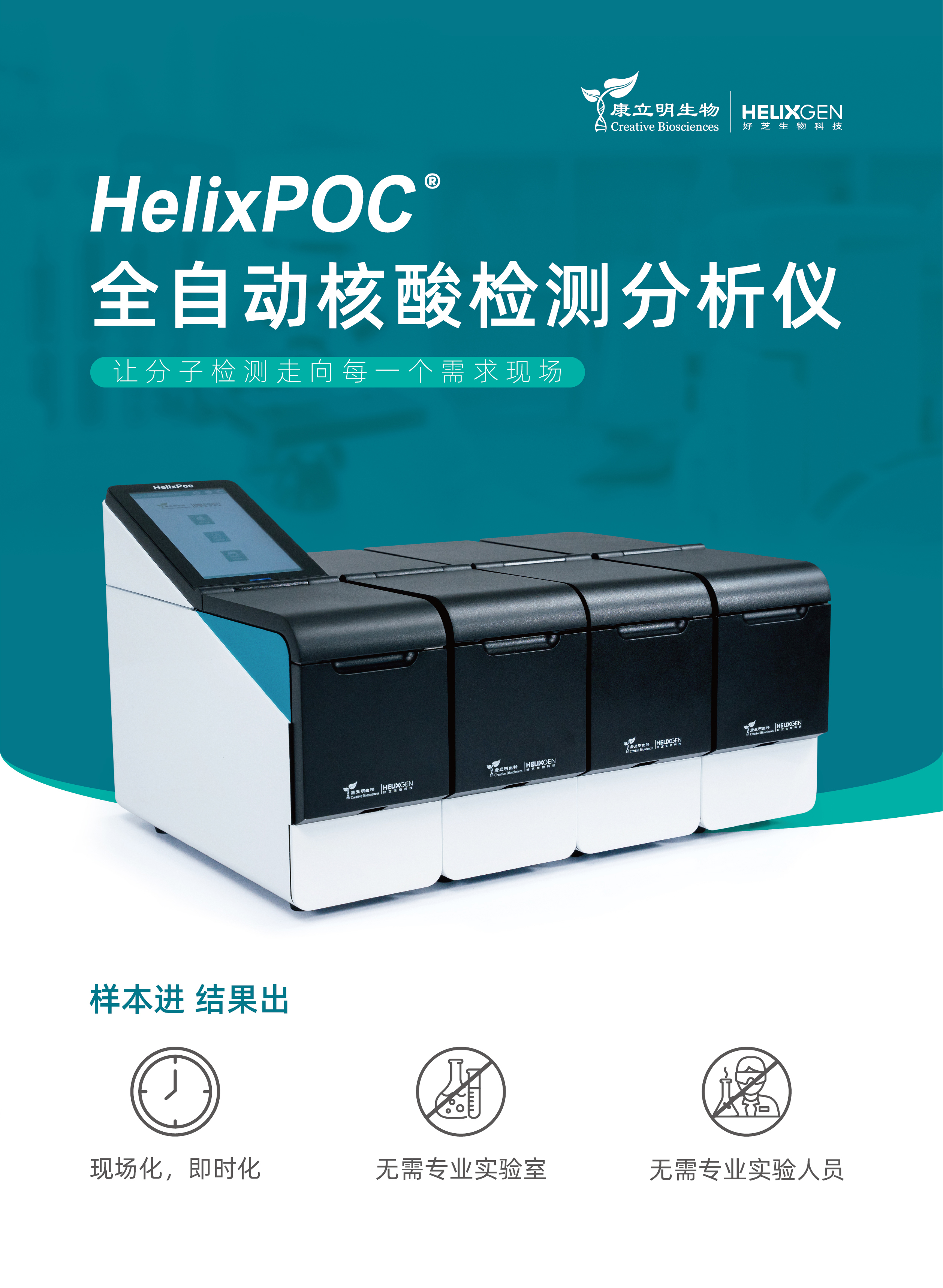 HelixPOC®全自動(dòng)微流控?zé)晒?/span>PCR一體機(jī)可進(jìn)行快速、準(zhǔn)確的實(shí)時(shí)PCR定性及定量或熔解曲線、基因型分析等類型的檢測(cè),實(shí)現(xiàn)從樣本到基因檢測(cè)結(jié)果的全程封閉運(yùn)行和自動(dòng)化。